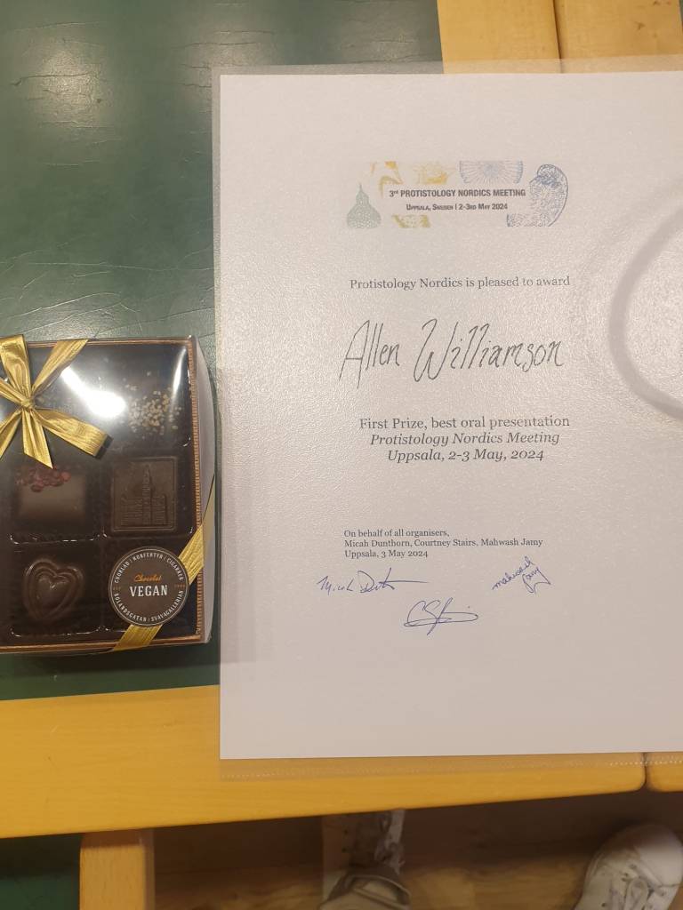 Congrats to Allen – Best Talk Prize at Protistology Nordics!!